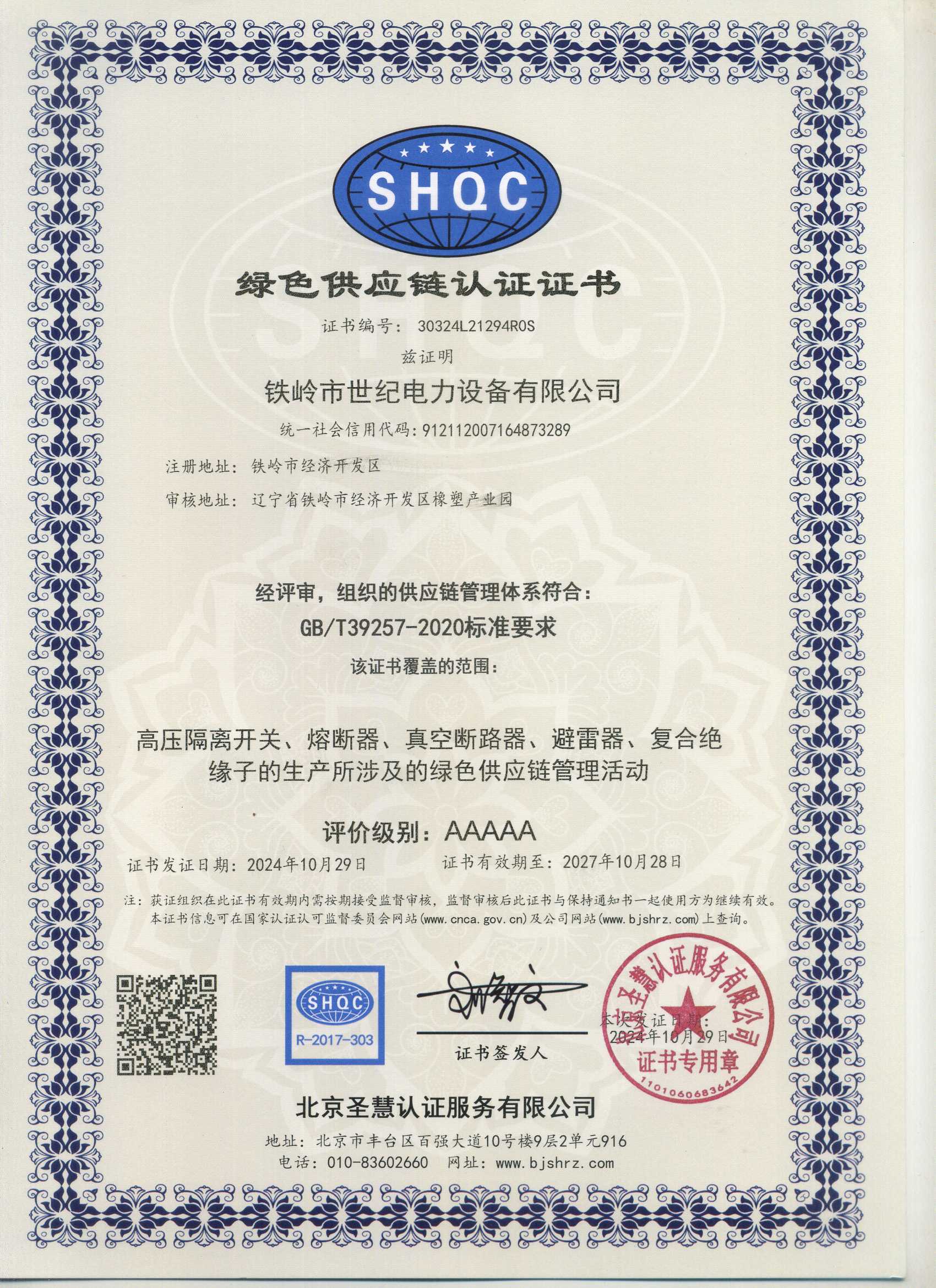 鐵嶺市世紀電力設備有限公司是集科研開發、生產制造、用戶服務于一體的國家高新技術企業,始建于1999年,位于鐵嶺經濟開發區,占地面積5萬余平方米,建筑面積2萬余平方米。主要從事國家電網配套戶外高低壓隔離開關、電力電纜、變壓器成套裝置、高低壓開關柜、箱式變電站、絕緣子等產品的研發、生產和銷售。公司現有國家發明專利6項、實用新型專利9項,公司通過了ISO9001國際質量管理體系認證、ISO14001環境管理體系認證和ISO 45001職業健康安全體系認證。
